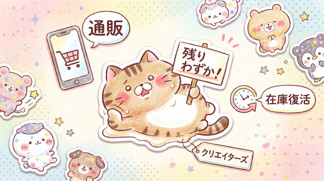 特にマシュマロシールのような数百円のお手頃グッズは、「あと少しで送料無料になるのに…」と他の商品(マスキングテープやポストカードなど)を探している間に売り切れてしまう「迷い中のタイムロス」が起きやすい商品です。逆に言えば、迷った末に手放された在庫が復活するタイミングこそが、ゲットするチャンスなんですよ!