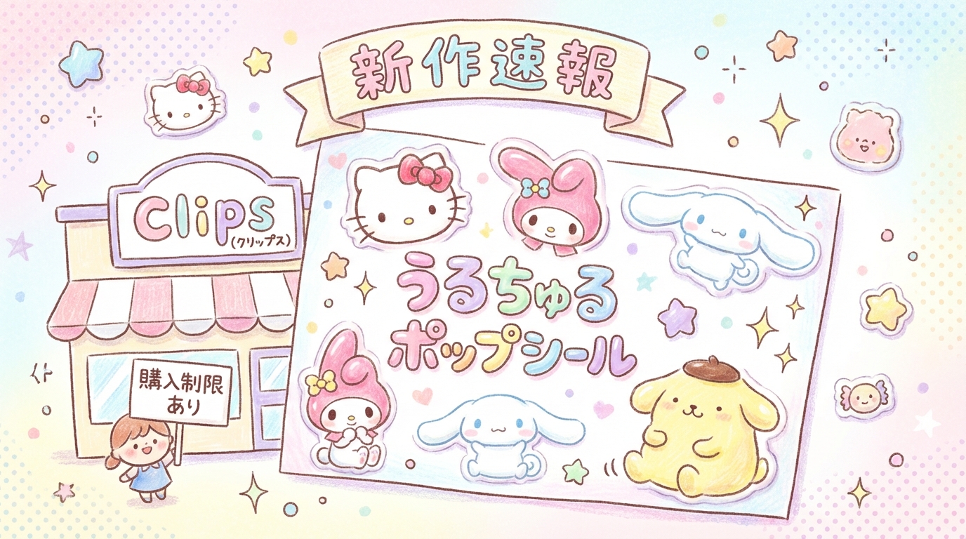 サンリオの新作「うるちゅるポップシール」が、文具店の「Clips(クリップス)」などで入荷しています!