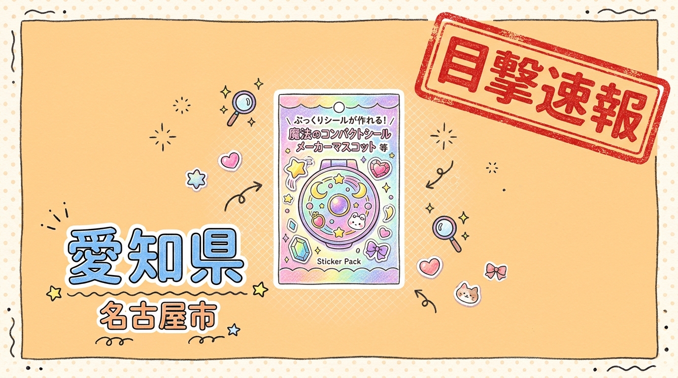 愛知県名古屋市の「ドリームカプセル 栄セントラルパーク店」にて、ぷっくりシールが作れる!魔法のコンパクトシールメーカーマスコット 等の目撃情報があります!