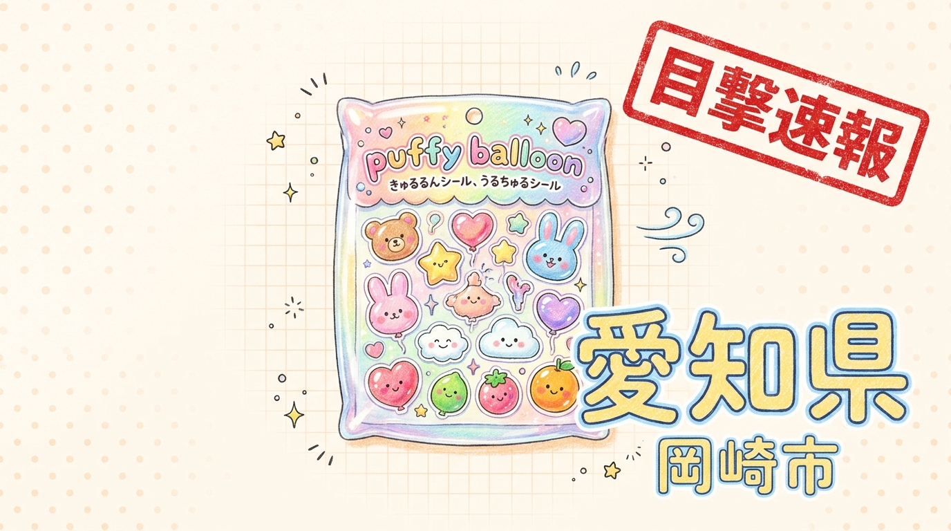 愛知県岡崎市の「新星堂 イオンモール岡崎店」にて、puffy balloon、きゅるるんシール、うるちゅるシールの目撃情報があります!