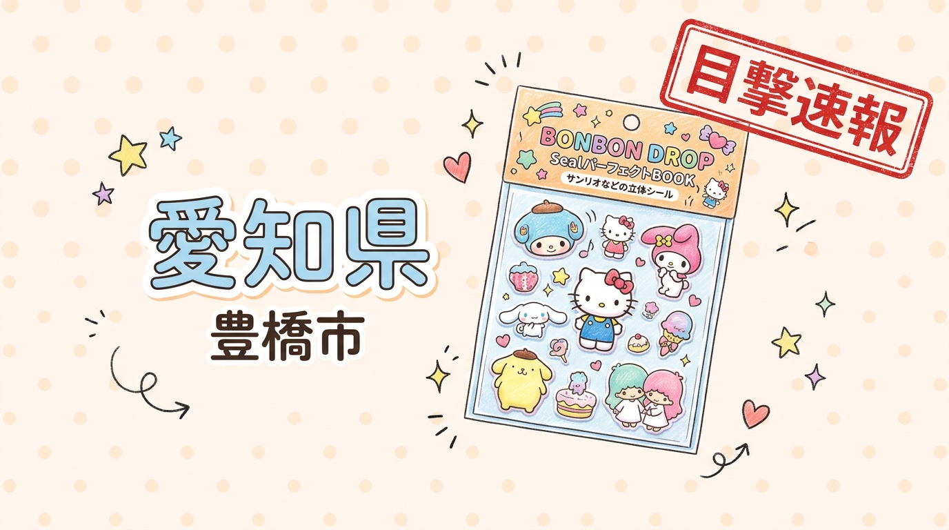愛知県豊橋市の「本の王国 文化センター前店」にて、BONBON DROP SealパーフェクトBOOK、サンリオなどの立体シールの目撃情報があります!