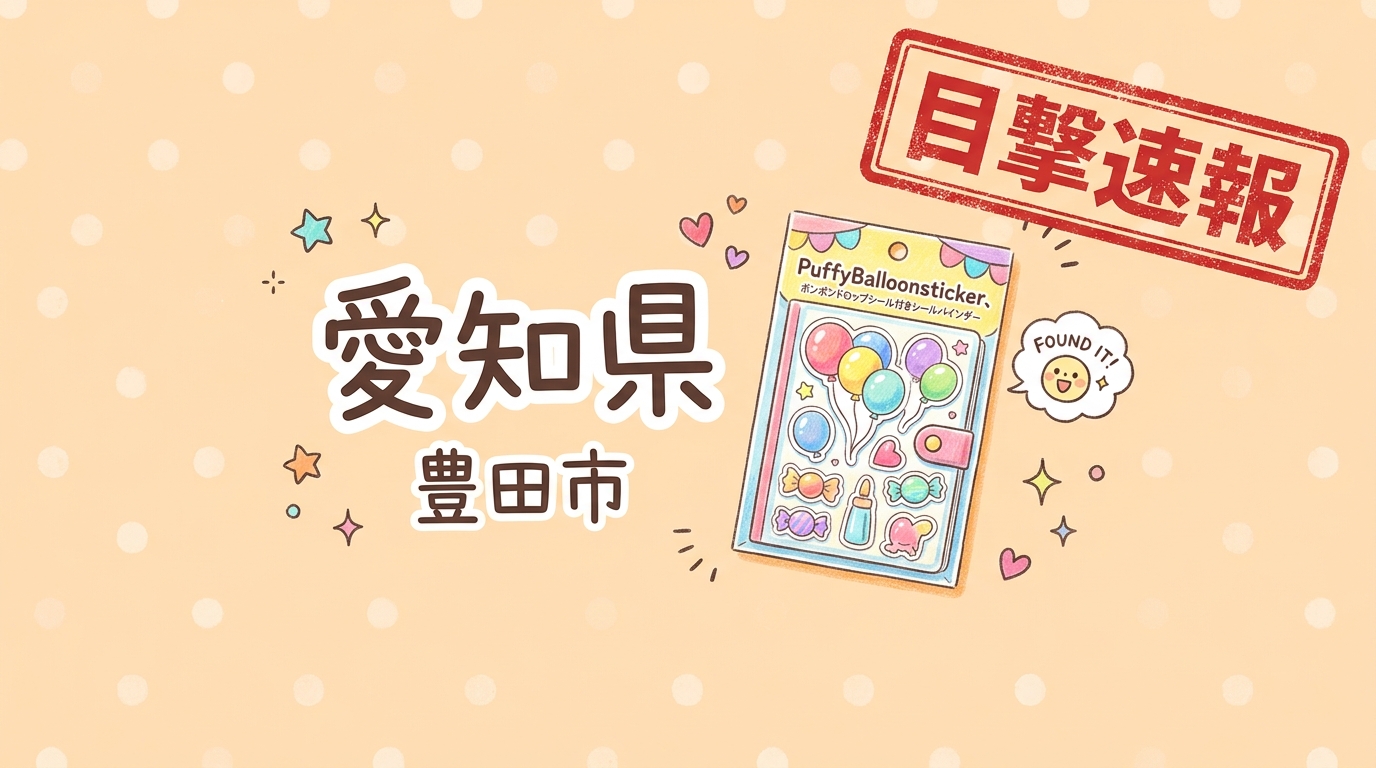 愛知県豊田市の「三洋堂書店 梅坪店」にて、PuffyBalloonsticker、ボンボンドロップシール付きシールバインダーの目撃情報があります!