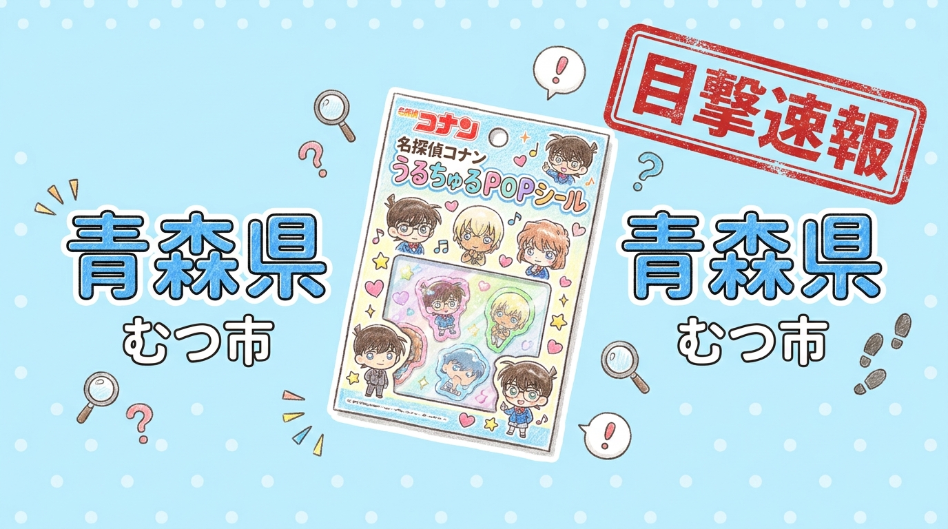 青森県むつ市の「萬屋 むつ店」にて、名探偵コナン うるちゅるPOPシールの目撃情報があります!