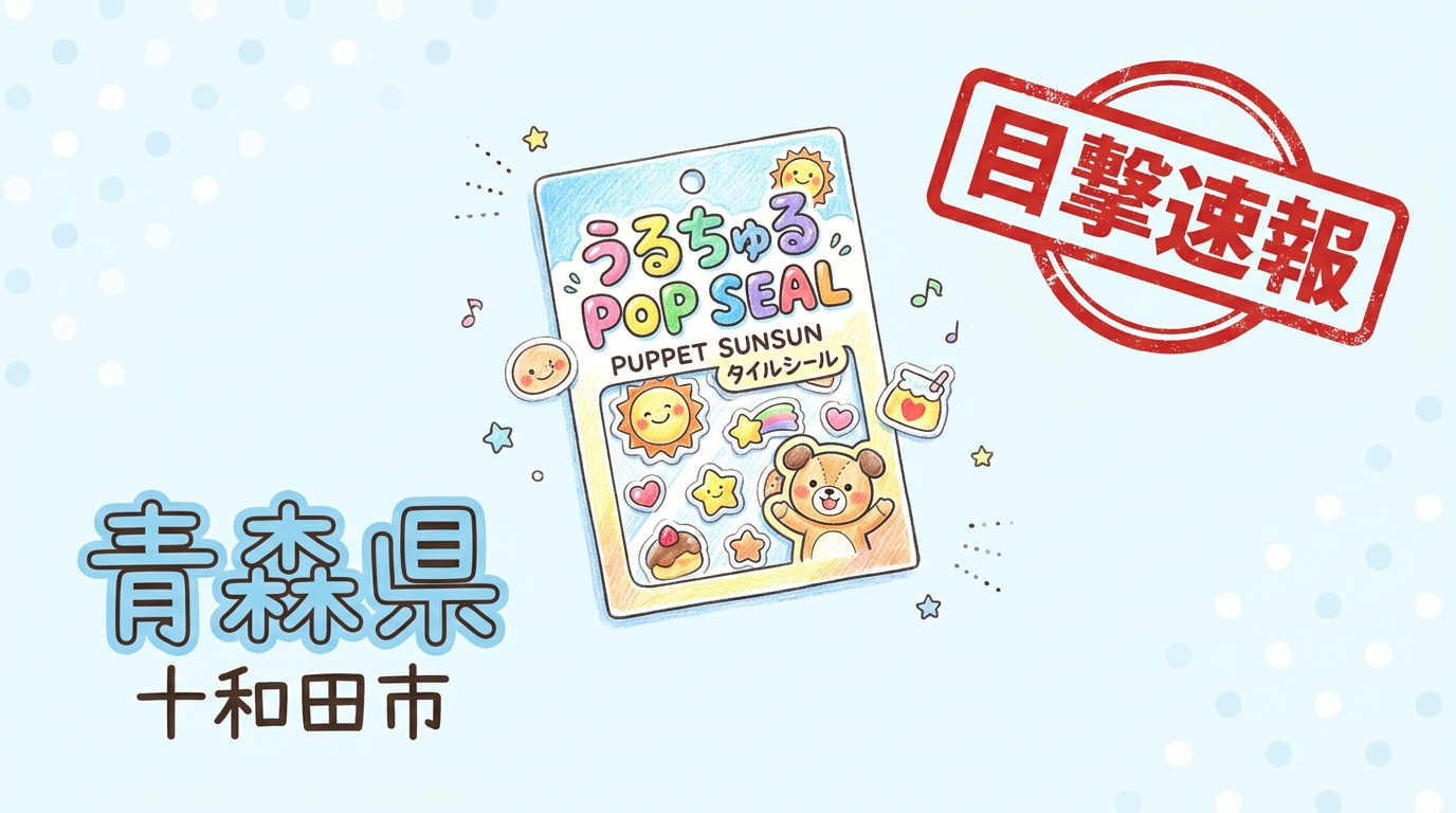青森県十和田市の「TSUTAYA 十和田元町店」にて、うるちゅる POP SEAL、PUPPET SUNSUN タイルシールの目撃情報があります!