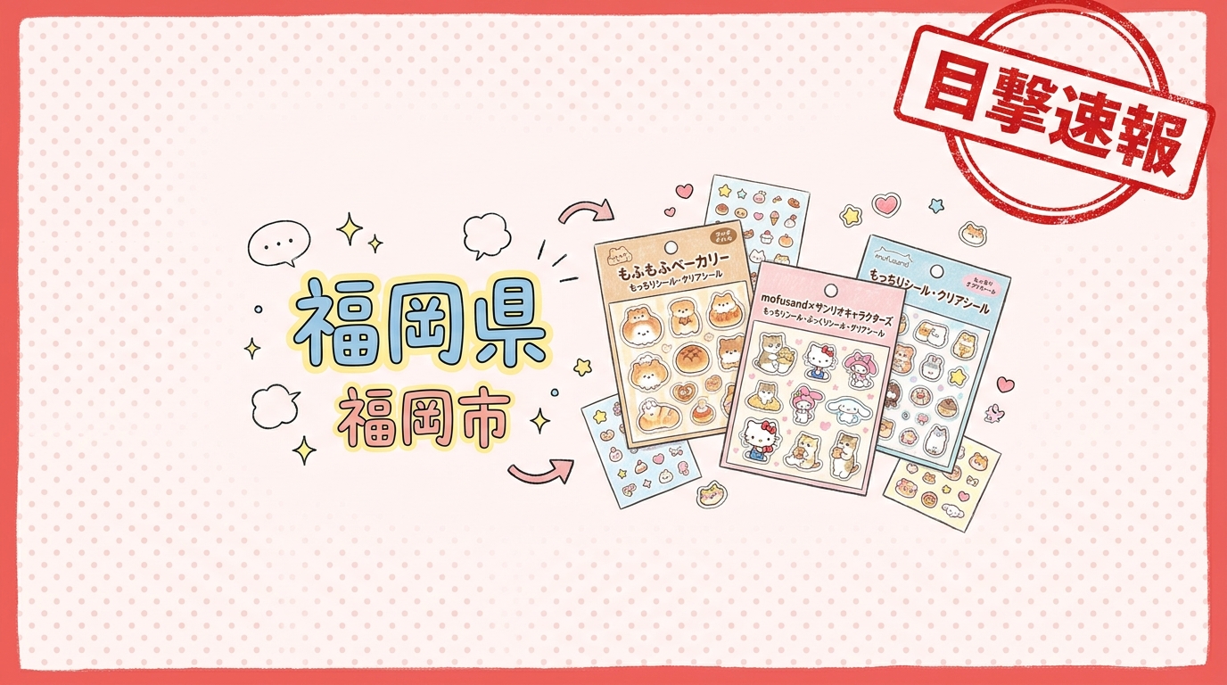 福岡県福岡市の「mofusandもふもふストア福岡PARCO」にて、もふもふベーカリーもっちりシール・クリアシール、mofusand×サンリオキャラクターズもっちりシール・ぷっくりシール・クリアシールの目撃情報があります!