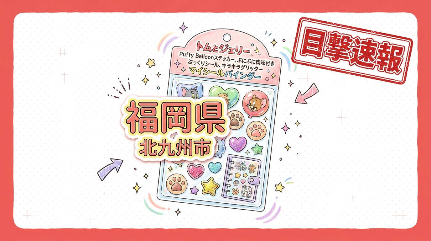 福岡県北九州市の「クエスト 小倉本店」にて、トムとジェリー ぷくぷくシール、Puffy Balloonステッカー、ぷにぷに肉球付き ぷっくりシール、キラキラグリッター マイシールバインダーの目撃情報があります!