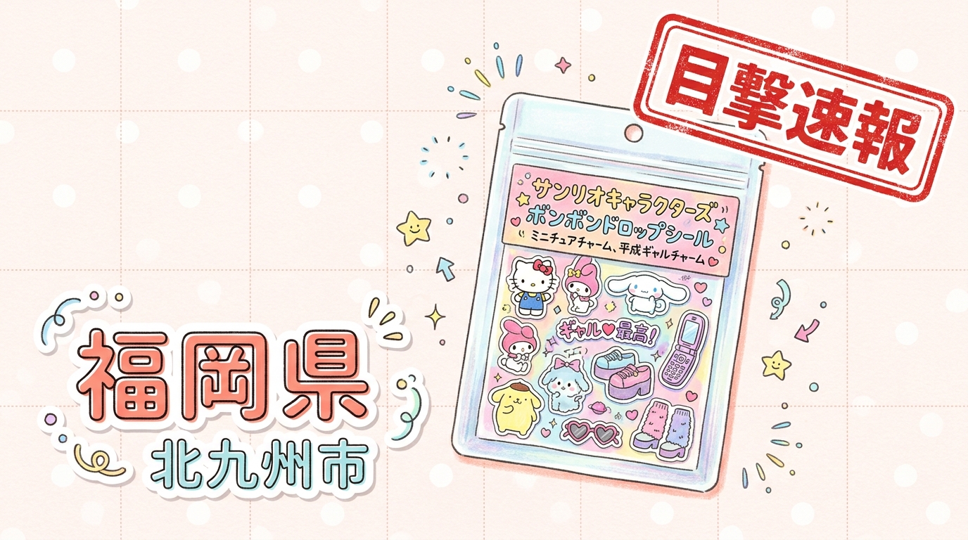- 内容: サンリオキャラクターズ ボンボンドロップシール ミニチュアチャーム、平成ギャルチャームが販売されていたとの報告あり。