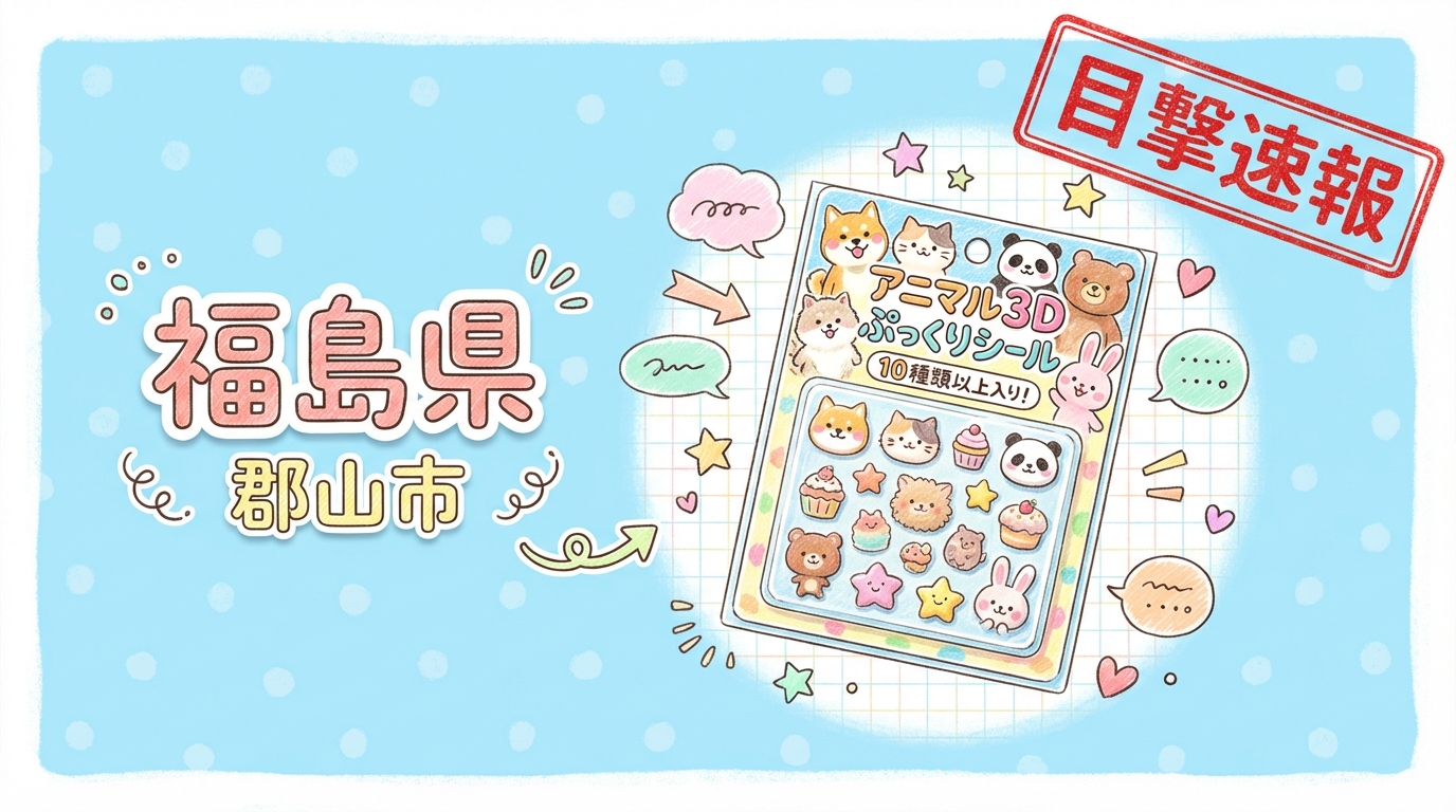 福島県郡山市の「ガレージファクトリー アティ郡山」にて、アニマル3Dぷっくりシールの目撃情報があります!