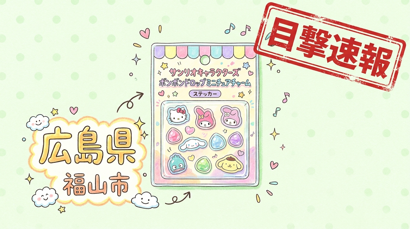 • 内容: サンリオキャラクターズ ボンボンドロップミニチュアチャームが販売されていたとの報告あり。
