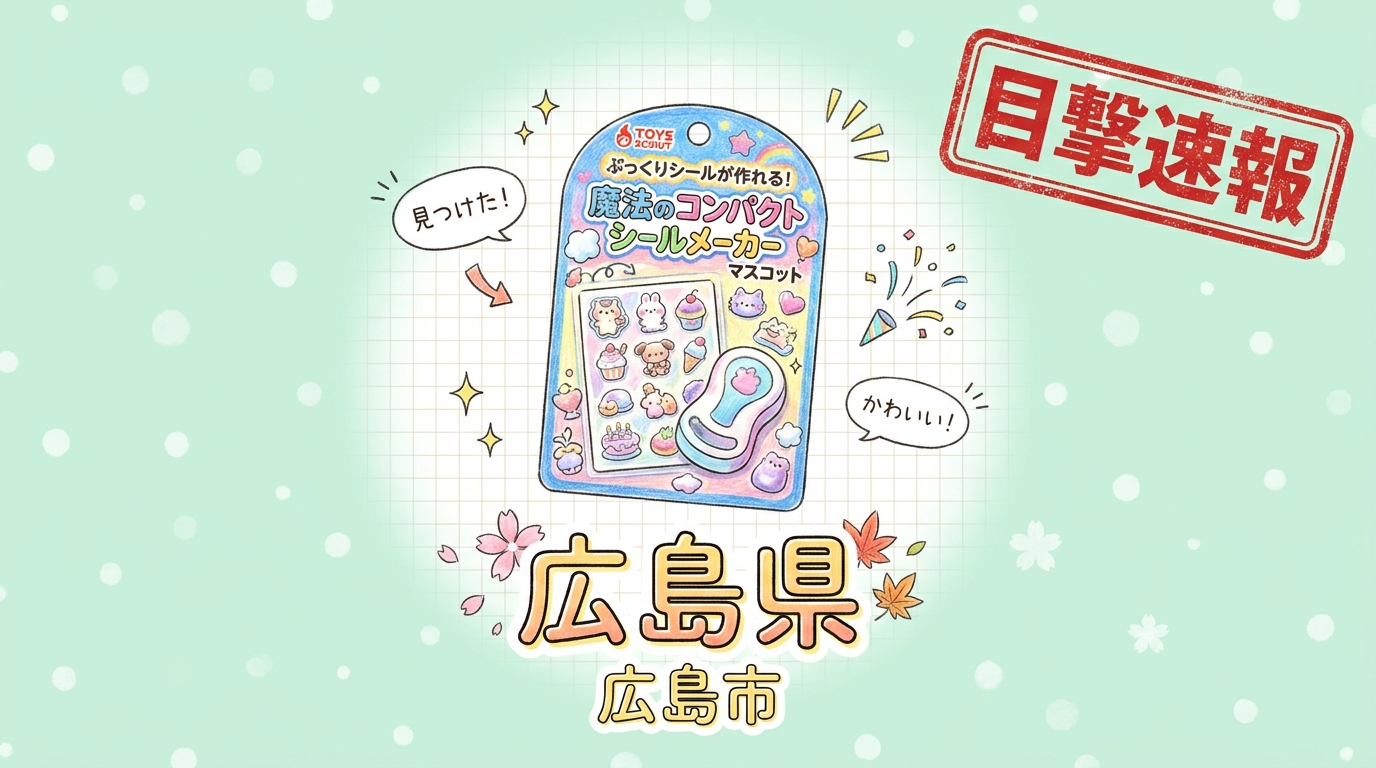 広島県広島市の「ガチャ王国 広島店」にて、トイズスピリッツ ぷっくりシールが作れる! 魔法のコンパクトシールメーカー マスコットの目撃情報があります!