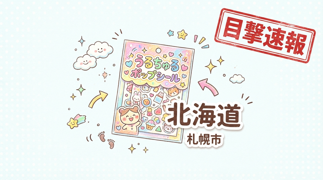 北海道札幌市の「GiGOココノススキノ」にて、うるちゅるポップシールの目撃情報があります!