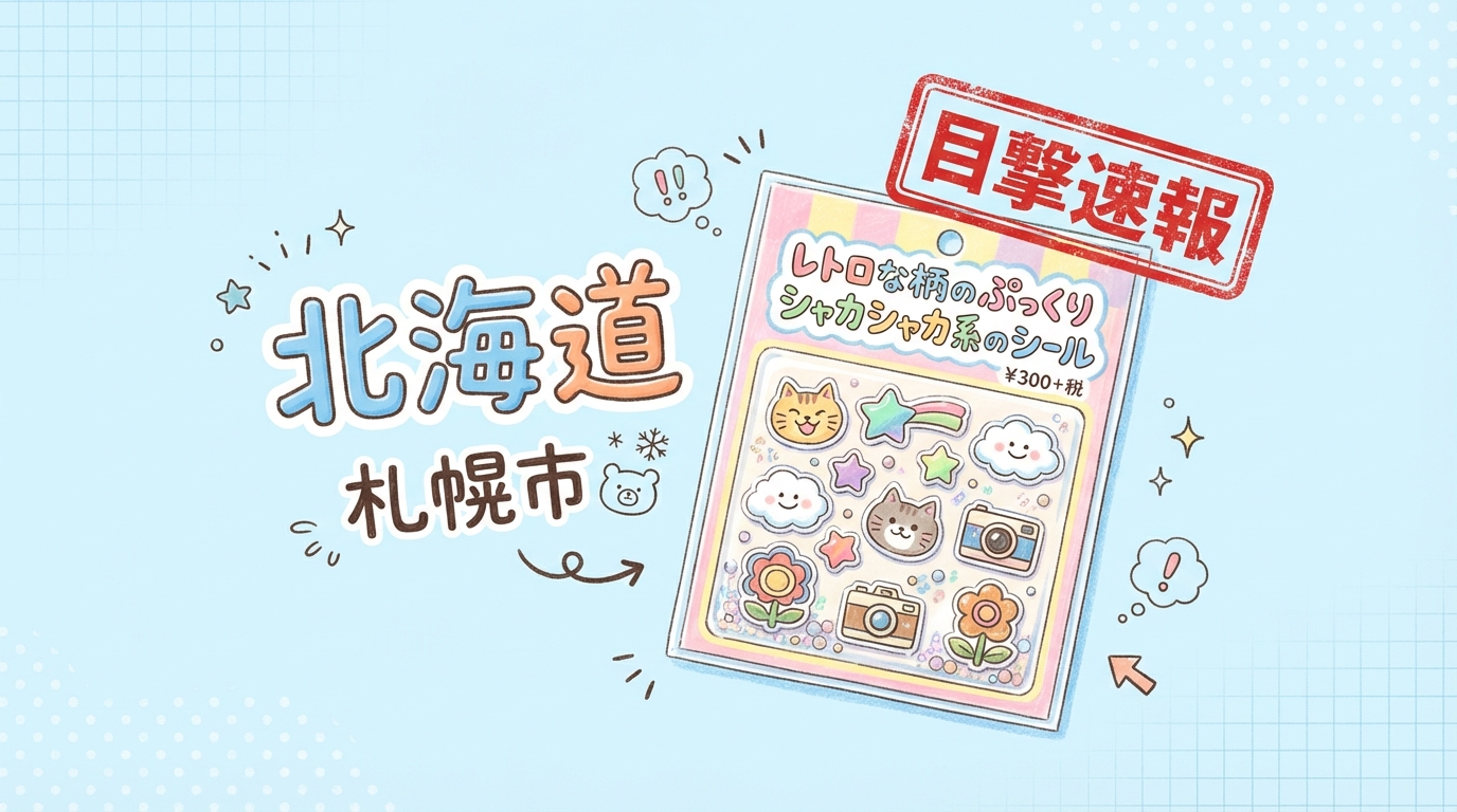 北海道札幌市の「おもちゃの平野」にて、レトロな柄のぷっくりシャカシャカ系のシールの目撃情報があります!