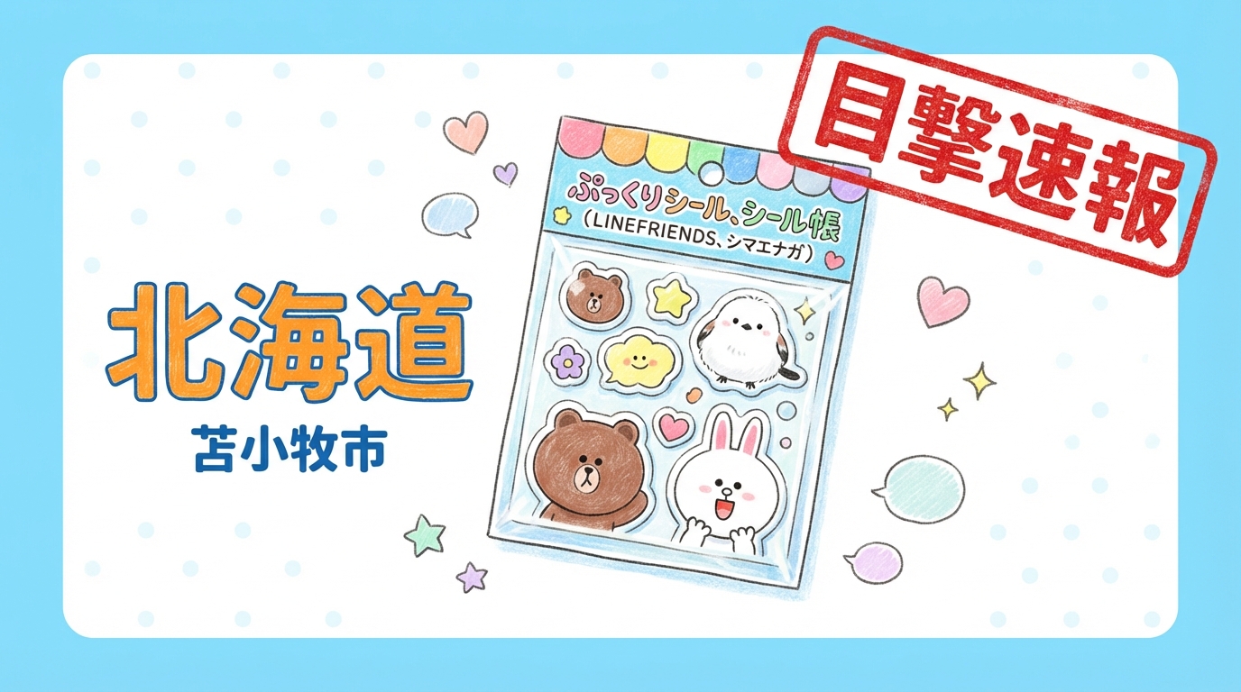 北海道苫小牧市の「エムズ 苫小牧店」にて、ぷっくりシール、シール帳(LINEFRIENDS、シマエナガ)の目撃情報があります!
