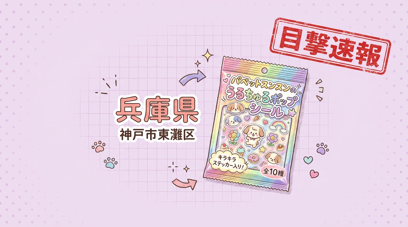 兵庫県神戸市東灘区の「雑貨店 Stellar (ステラ)」にて、パペットスンスンのうるちゅるポップシールの目撃情報があります!
