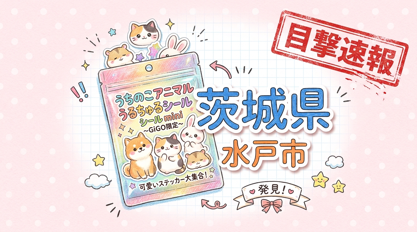 茨城県水戸市の「GiGO 水戸」にて、うちのこアニマルうるちゅるシールmini ~GiGO限定~の目撃情報があります!