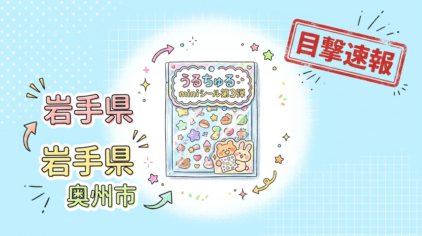 岩手県奥州市の「GiGO 水沢」にて、うるちゅるminiシール第3弾の目撃情報があります!