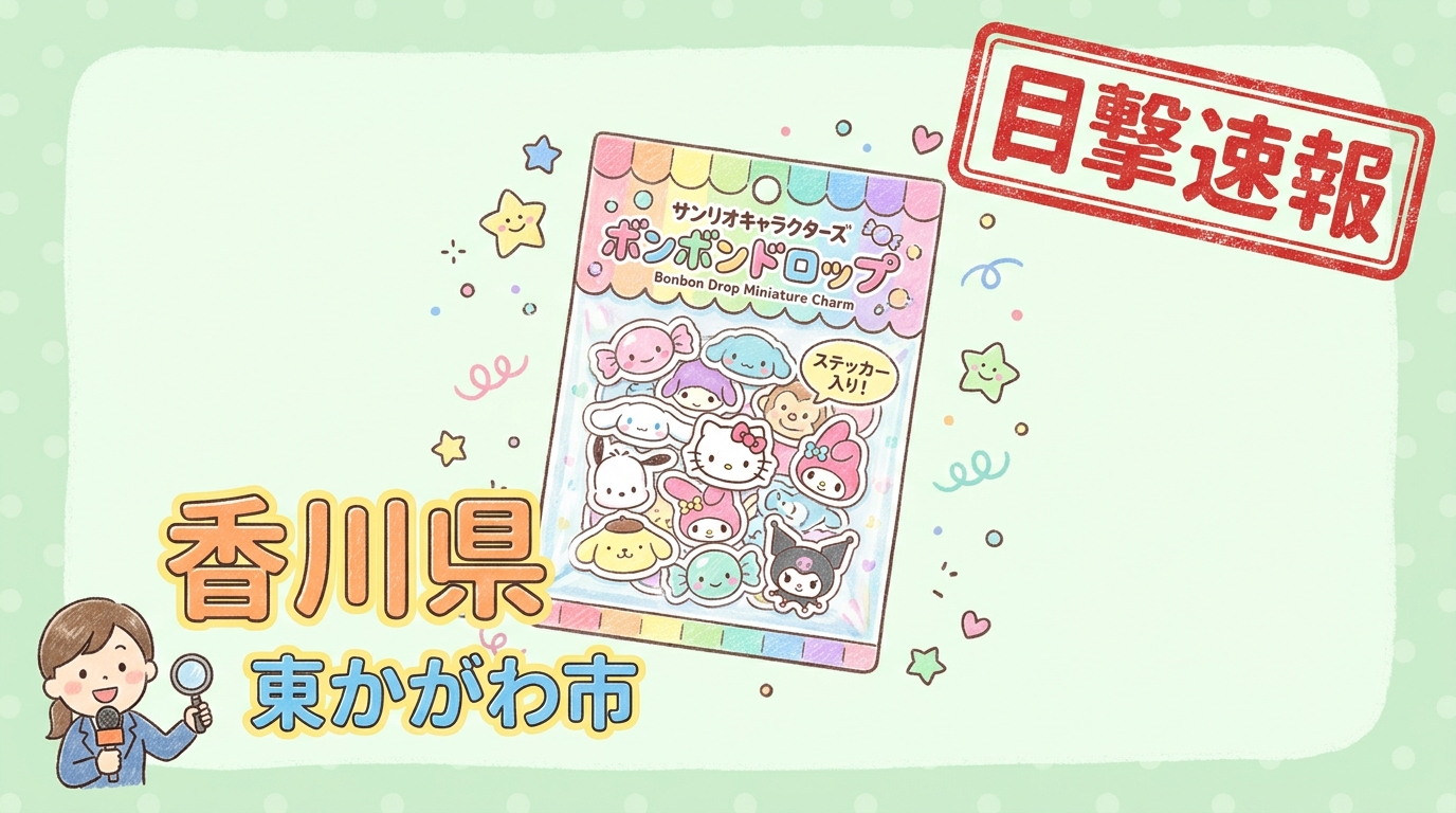 香川県東かがわ市の「ふぇすたらんど白鳥店」にて、サンリオキャラクターズ ボンボンドロップミニチュアチャームの目撃情報があります!