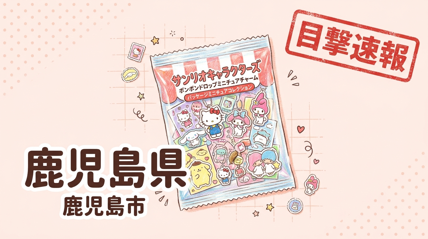 鹿児島県鹿児島市の「サープラ鹿児島あそびタウン」にて、サンリオキャラクターズボンボンドロップミニチュアチャーム、サンリオキャラクターズパッケージミニチュアコレクションの目撃情報があります!