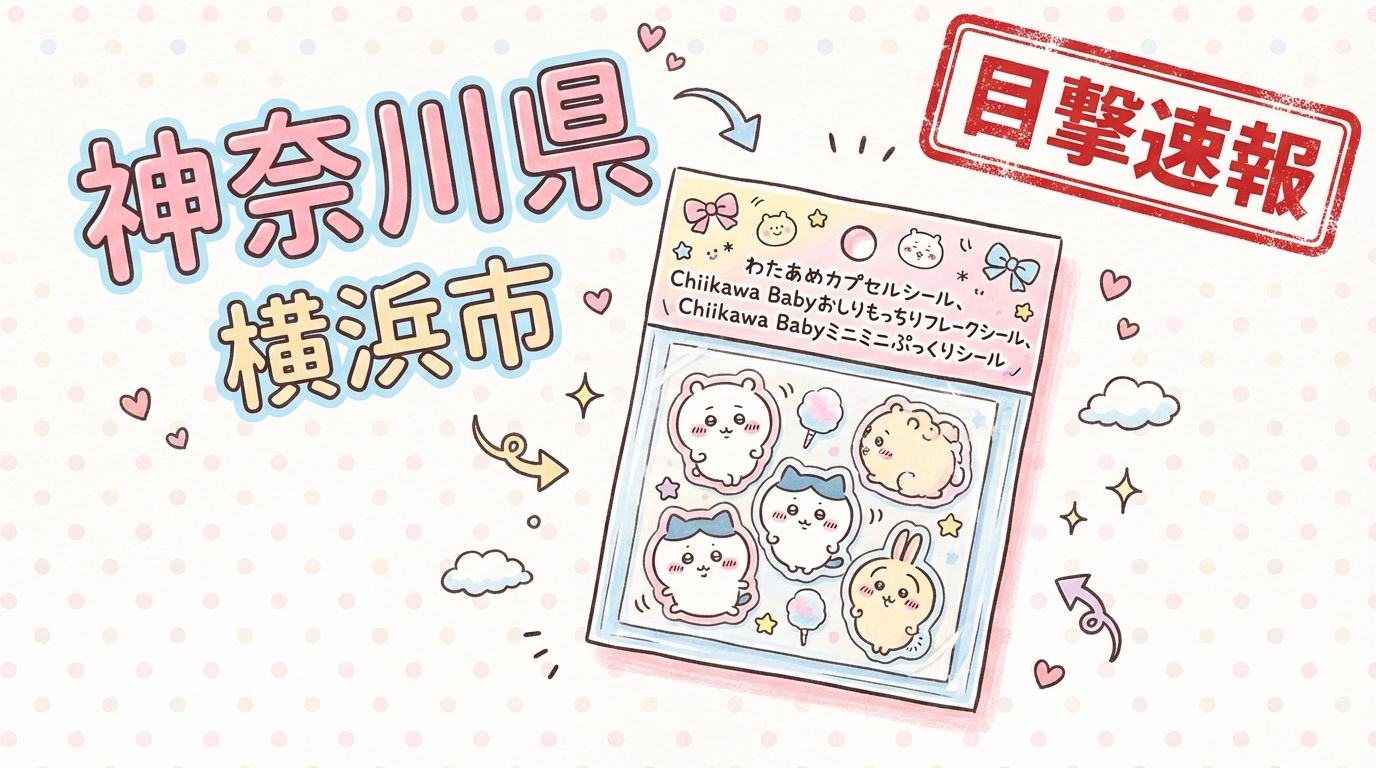 神奈川県横浜市の「ちいかわらんど 横浜店」にて、わたあめカプセルシール、Chiikawa Babyおしりもっちりフレークシール、Chiikawa Babyミニミニぷっくりシールの目撃情報があります!