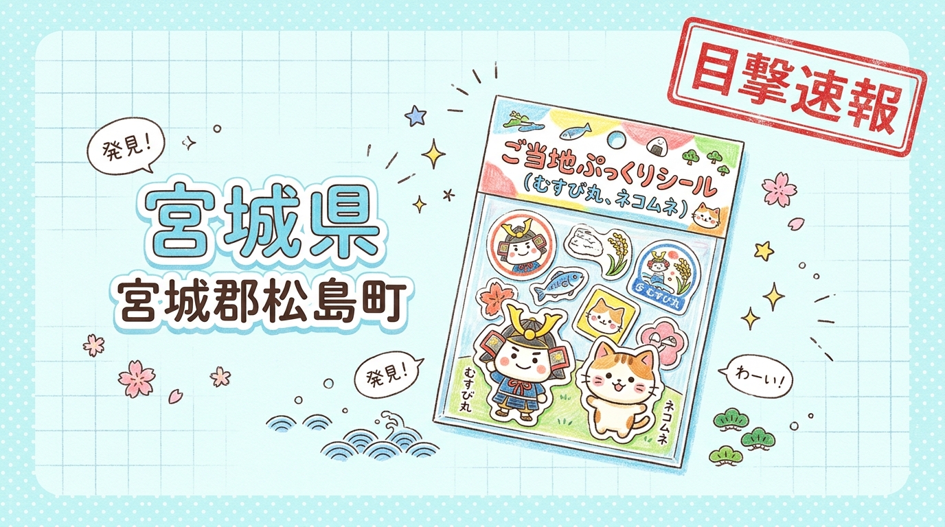 宮城県宮城郡松島町の「陸奥物産店」にて、ご当地ぷっくりシール(むすび丸、ネコムネ)の目撃情報があります!