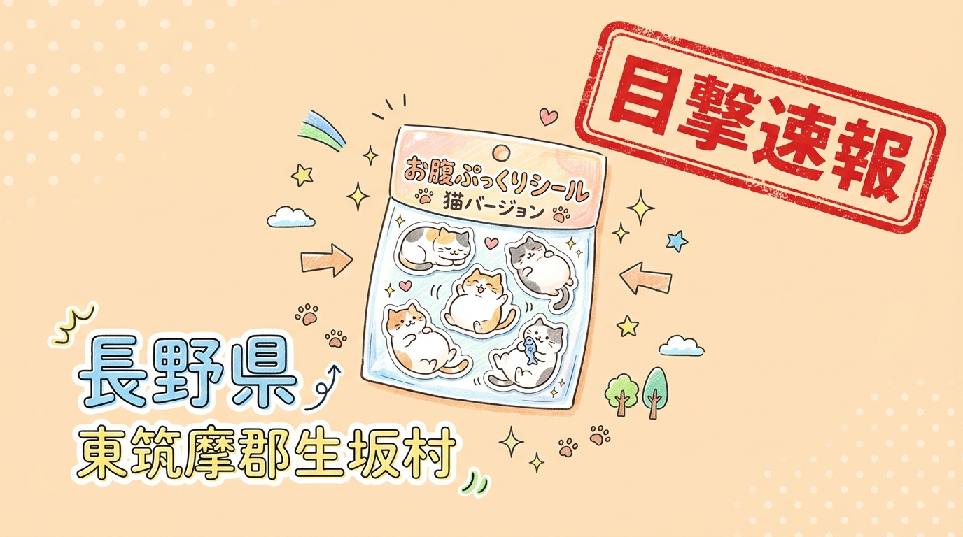 長野県東筑摩郡生坂村の「道の駅 いくさかの郷」にて、お腹ぷっくりシール 猫バージョンの目撃情報があります!