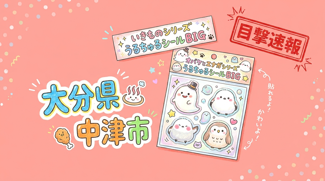 大分県中津市の「GiGO 中津」にて、いきものシリーズうるちゅるシールBIG、オバケとエナガシリーズうるちゅるシールBIGの目撃情報があります!