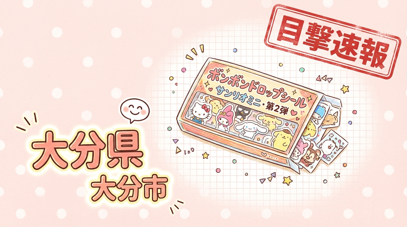 大分県大分市の「キデイランド (アミュプラザおおいた 3階)」にて、ボンボンドロップシール サンリオミニ・第2弾の目撃情報があります!