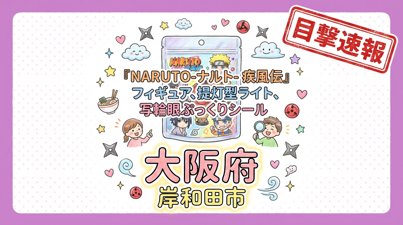 - 内容: 『NARUTO-ナルト- 疾風伝』フィギュア、提灯型ライト、写輪眼ぷっくりシールが販売されていたとの報告あり。