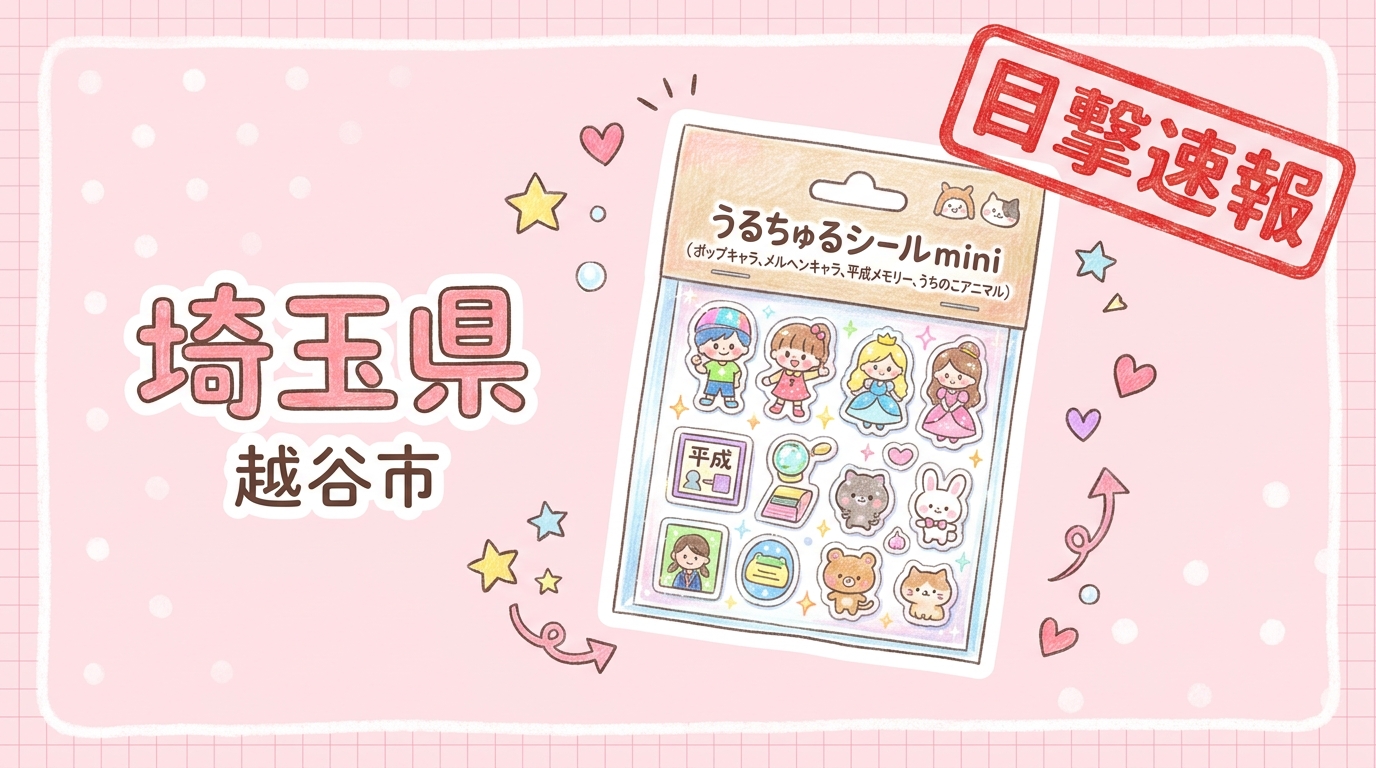 - 内容: うるちゅるシールmini(ポップキャラ、メルヘンキャラ、平成メモリー、うちのこアニマル)が販売されていたとの報告あり。
