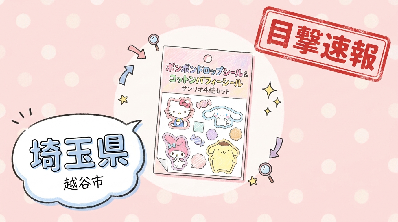 埼玉県越谷市の「パーティリコ イオンレイクタウン店」にて、ボンボンドロップシール&コットンパフィーシール サンリオ4種セットの目撃情報があります!