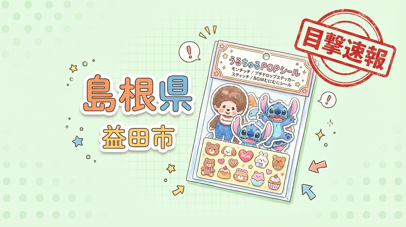 【目撃速報】うるちゅるPOPシール モンチッチ / プチドロップステッカー スティッチ / BGMむにむにシール|島根県益田市(文華堂)