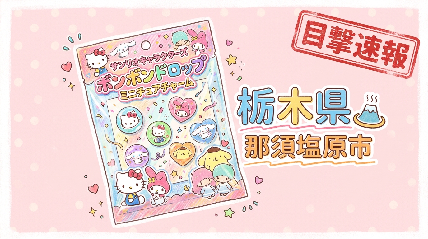 栃木県那須塩原市の「ガシャポンバンダイオフィシャルショップ BOOK TOWN 黒磯店」にて、サンリオキャラクターズ ボンボンドロップミニチュアチャームの目撃情報があります!