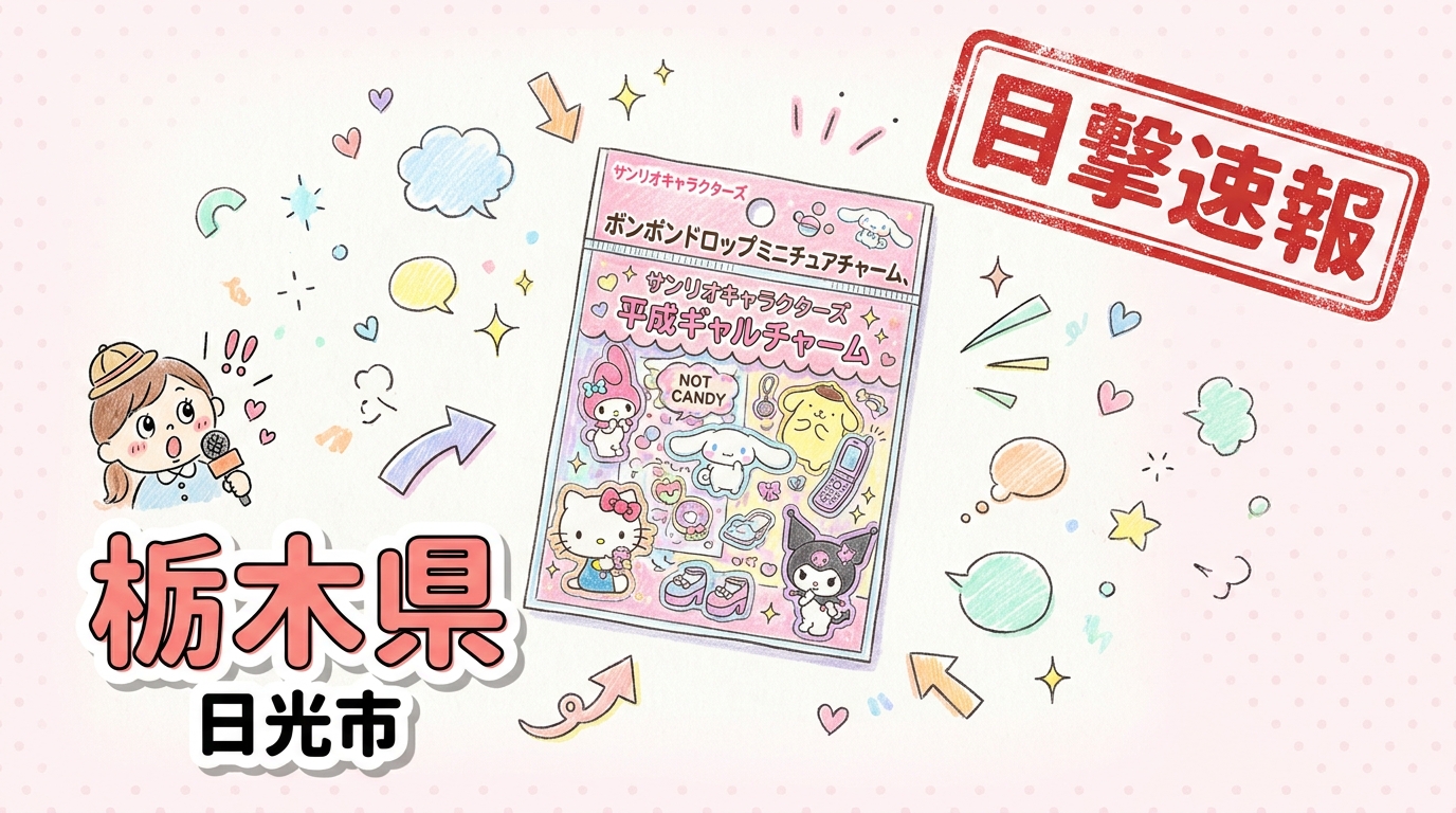 - 内容: サンリオキャラクターズ ボンボンドロップミニチュアチャーム、サンリオキャラクターズ 平成ギャルチャームが販売されていたとの報告あり。