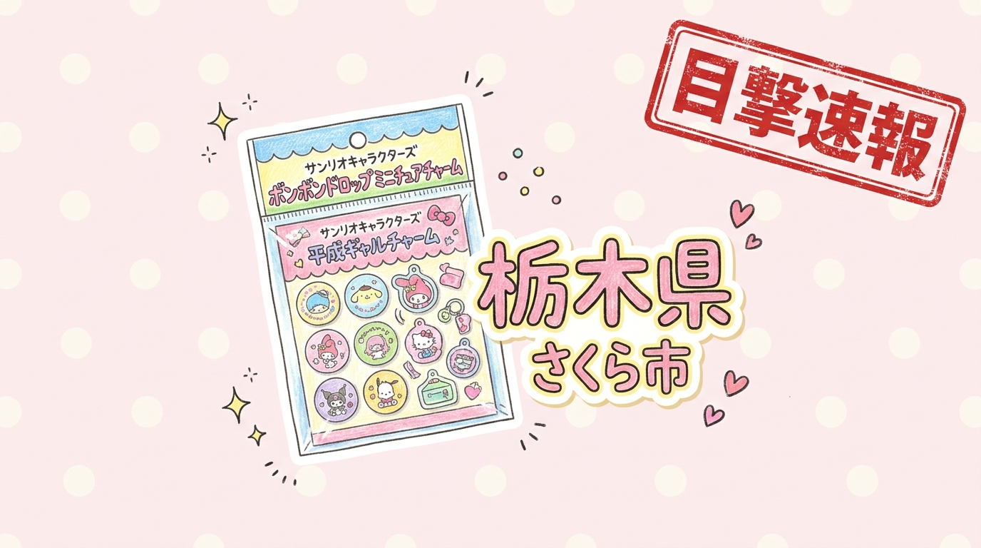 栃木県さくら市の「ガシャポンバンダイオフィシャルショップ TSUTAYAさくら店」にて、サンリオキャラクターズ ボンボンドロップミニチュアチャーム、サンリオキャラクターズ 平成ギャルチャームの目撃情報があります!