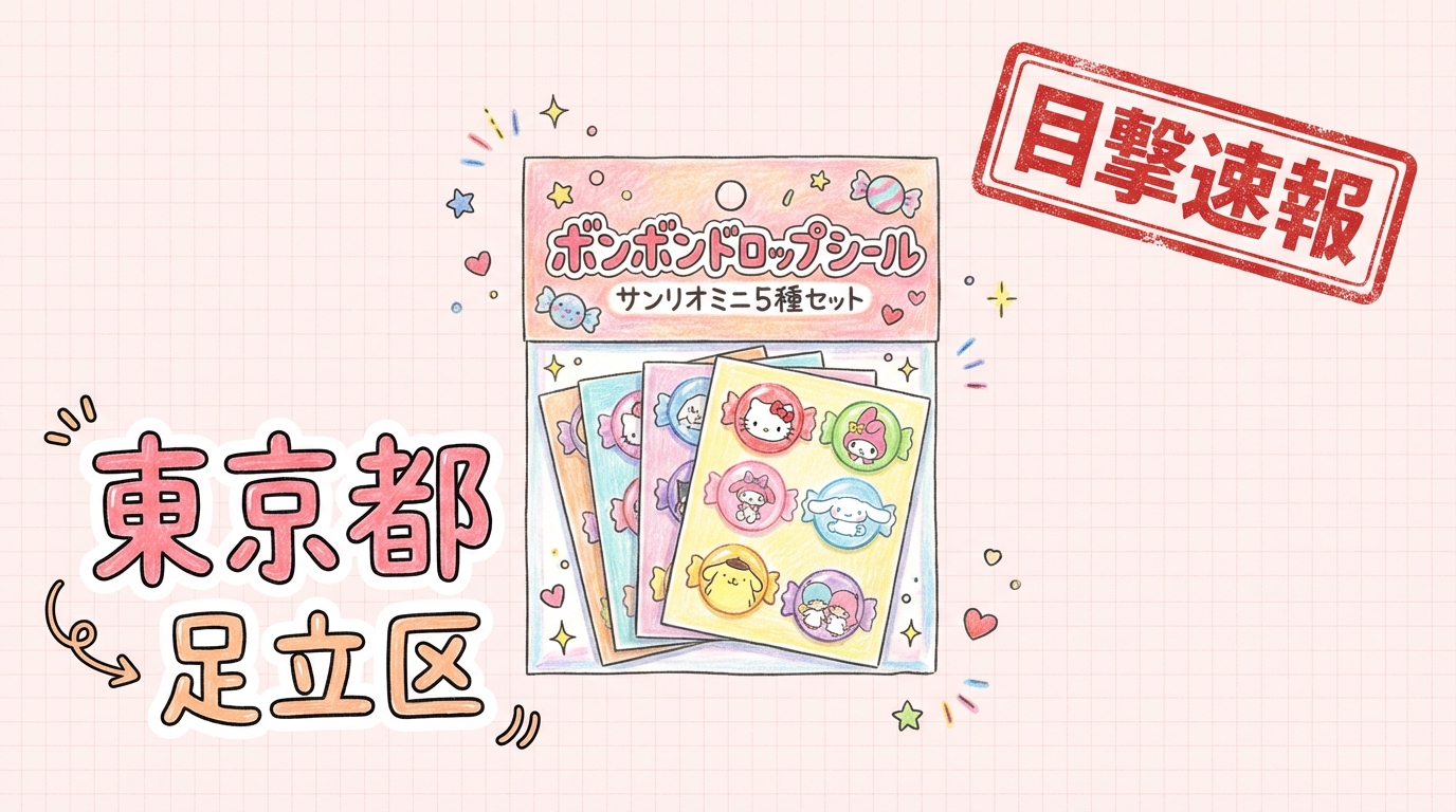 東京都足立区の「パーティリコ アリオ西新井店」にて、ボンボンドロップシール サンリオミニ5種セットの目撃情報があります!