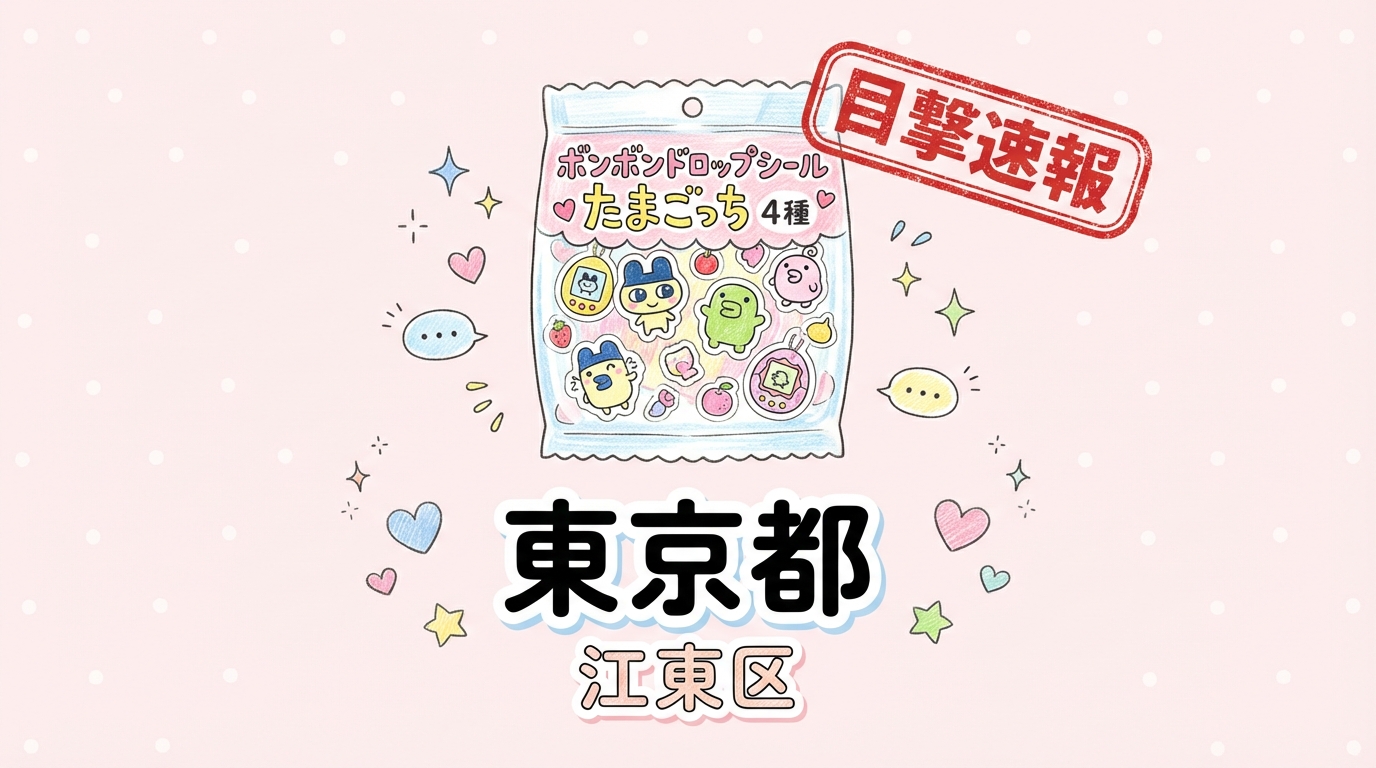 東京都江東区の「パーティリコ スナモ店」にて、ボンボンドロップシール たまごっち 4種の目撃情報があります!
