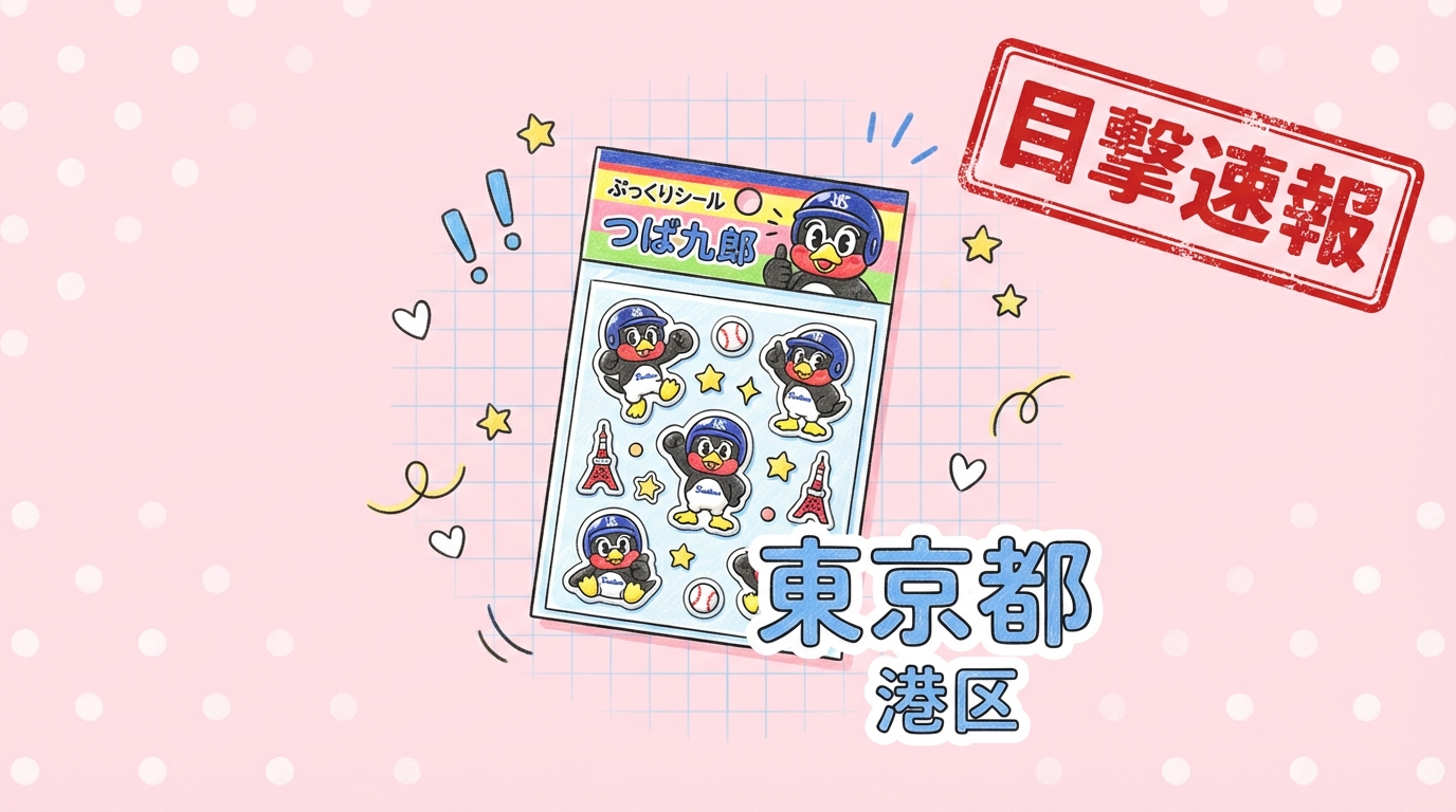 東京都港区の「ヤクルトスワローズ オフィシャルグッズショップ スタジアム通り店」にて、つば九郎ぷっくりシールの目撃情報があります!