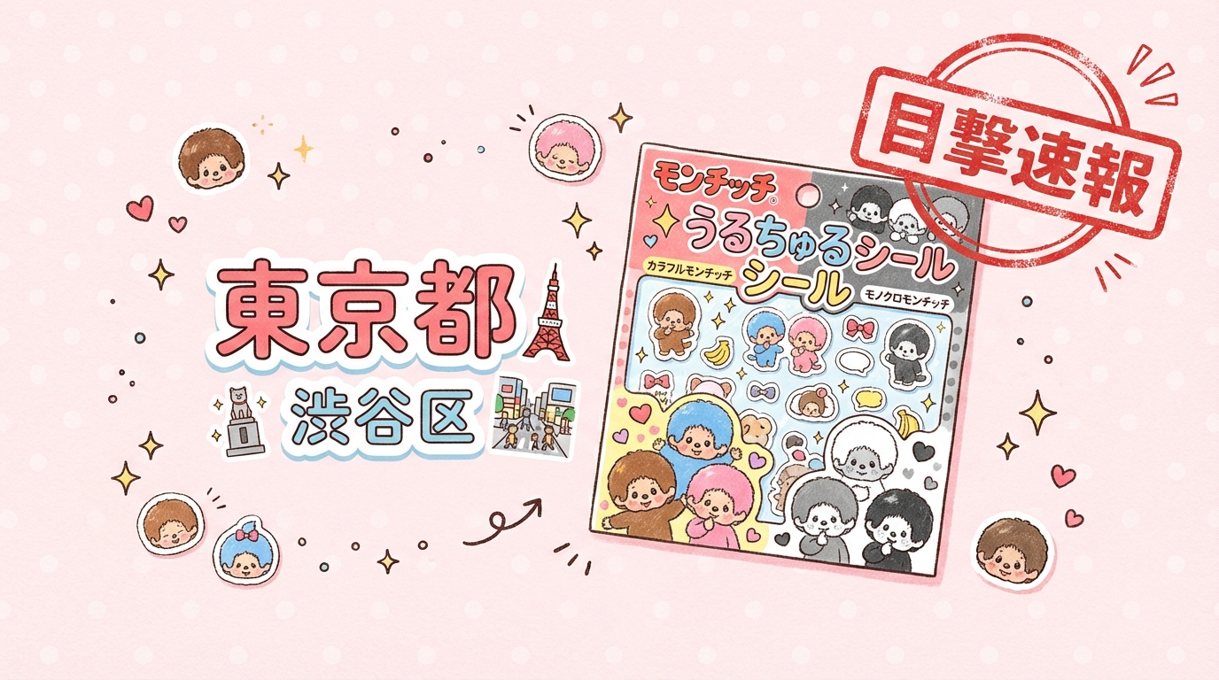 【目撃速報】モンチッチ うるちゅるシール(カラフルモンチッチ、モノクロモンチッチ)|東京都渋谷区(YKG99Picnic店)