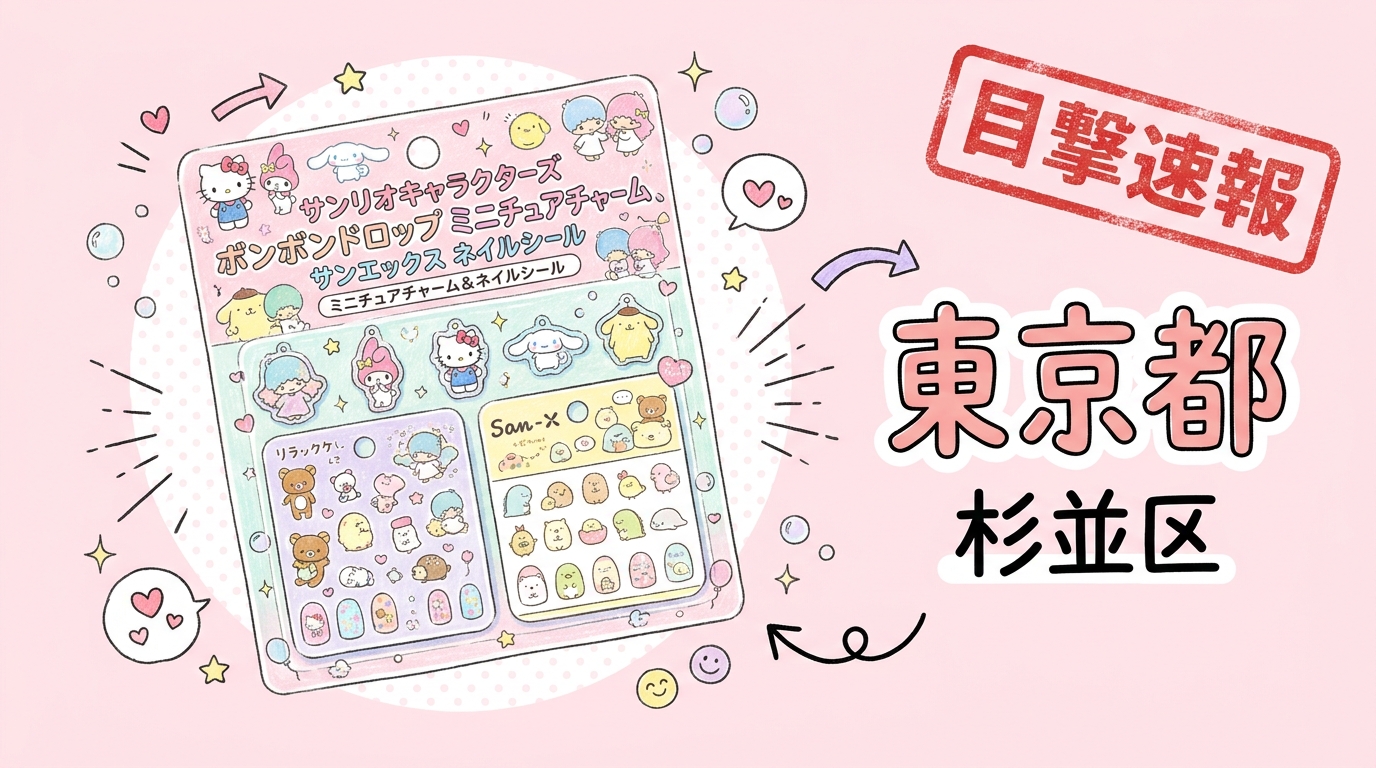 - 内容: サンリオキャラクターズ ボンボンドロップミニチュアチャーム、サンエックス ネイルシールが販売されていたとの報告あり。