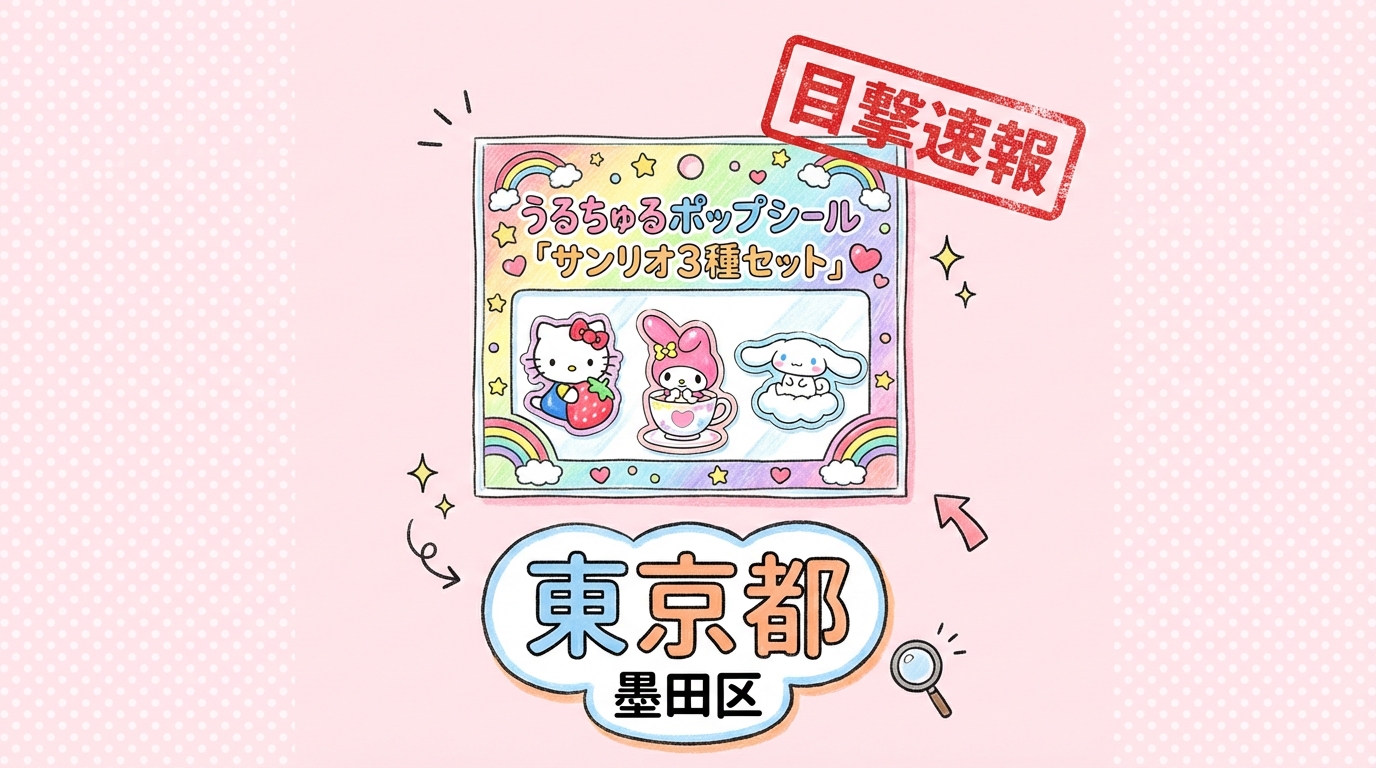 東京都墨田区の「パーティリコ 東京ソラマチ店」にて、うるちゅるポップシール「サンリオ3種セット」の目撃情報があります!