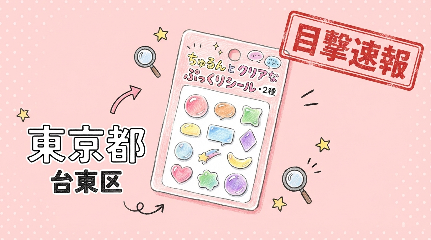東京都台東区の「ヤマシロヤ」にて、ちゅるんとクリアなぷっくりシール・2種の目撃情報があります!