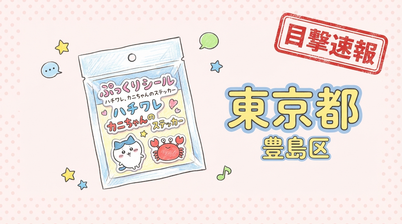 東京都豊島区の「池袋駅 ポップアップストア (ちいかわ)」にて、ぷっくりシール、ハチワレ、カニちゃんのステッカーの目撃情報があります!
