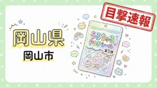 中国・四国 【目撃速報】うるちゅるPOPシール第3弾|岡山県岡山市(GiGO 天満屋ハピータウン岡北) 岡山県岡山市の「GiGO 天満屋ハピータウン岡北」にて、うるちゅるPOPシール第3弾の目撃情報があります! 4月25日より入荷予定(mini、BIG両方) お近くの方はチェックしてみる価値がありそ... 2026.04.25 中国・四国岡山都道府県別